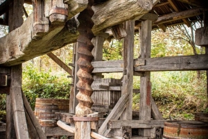 Instalația cuprinde: grinda de presare, confecționată dintr-un trunchi de copac (stejar), tăiat la bifurcarea în ramuri, platforma, realizată din grinzi de stejar fasonate cu barda, și fusul, acesta având rolul de a ridica grinda.
