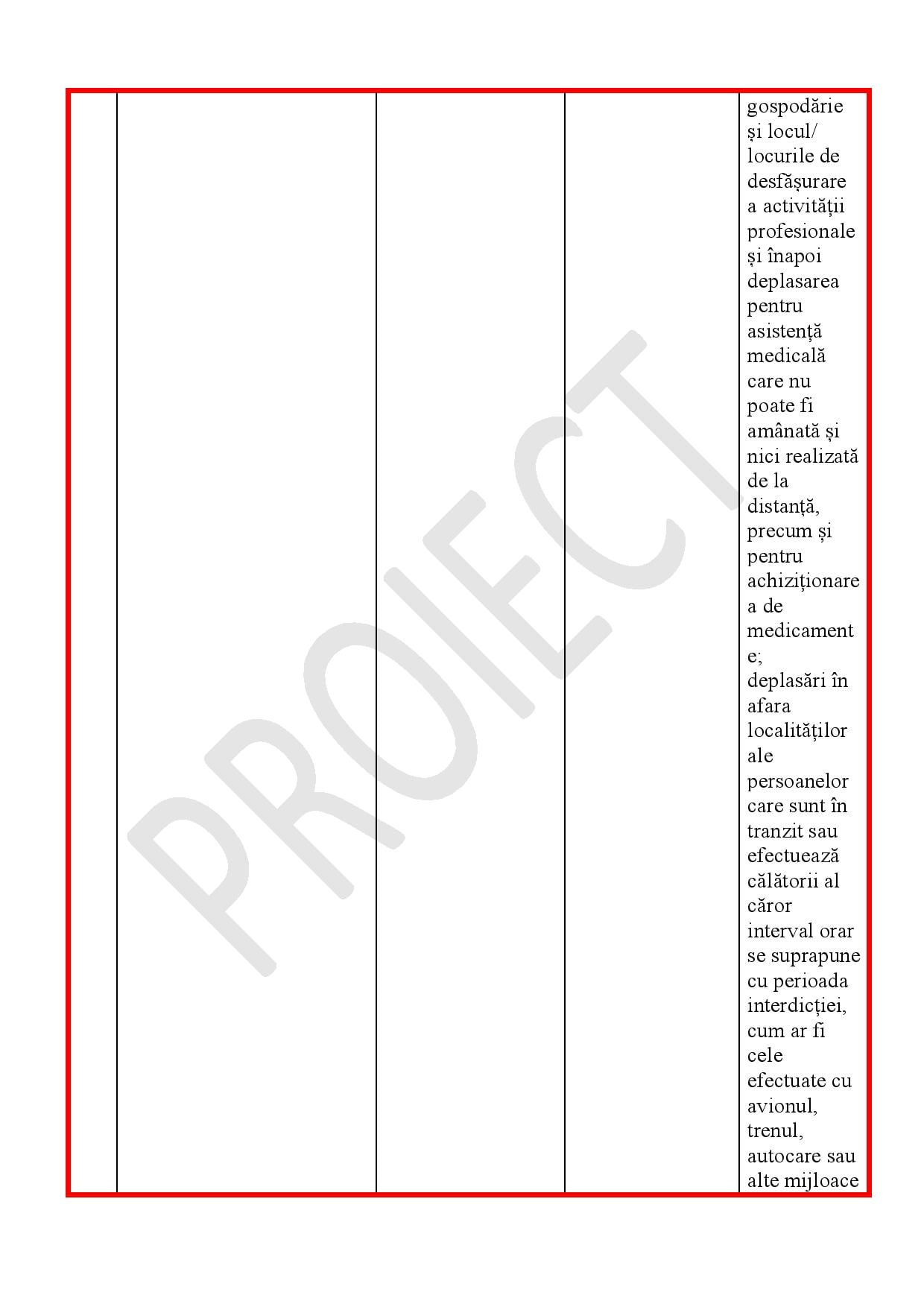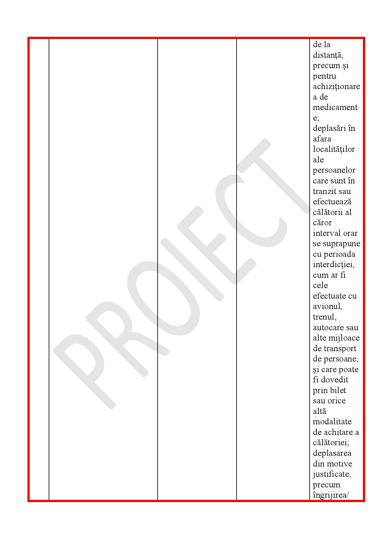 c) deplasări în afara localităților ale persoanelor care sunt în tranzit sau efectuează călătorii al căror interval orar se suprapune cu perioada interdicției, cum ar fi cele efectuate cu avionul, trenul, autocare sau alte mijloace de transport de persoane, și care pot fi dovedite prin bilet sau orice altă modalitate de achitare a călătoriei; d) deplasarea din motive justificate, precum îngrijirea/însoțirea copilului, asistența persoanelor vârstnice, bolnave sau cu dizabilități ori decesul unui membru de familie.