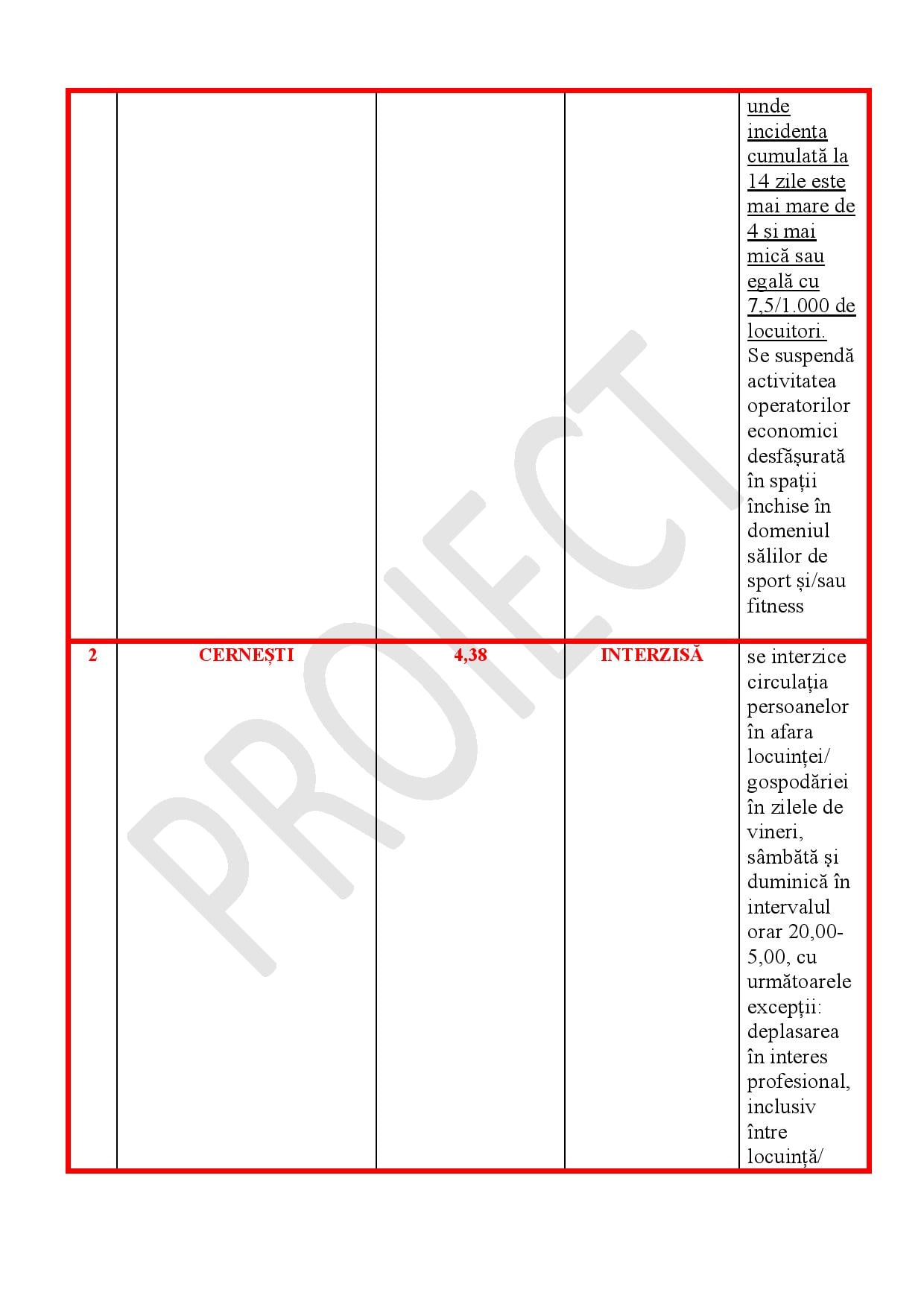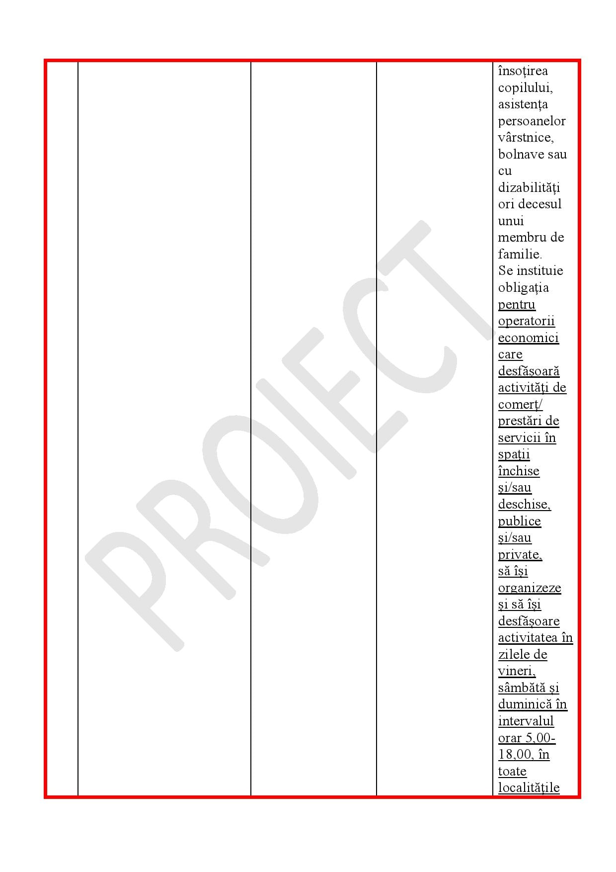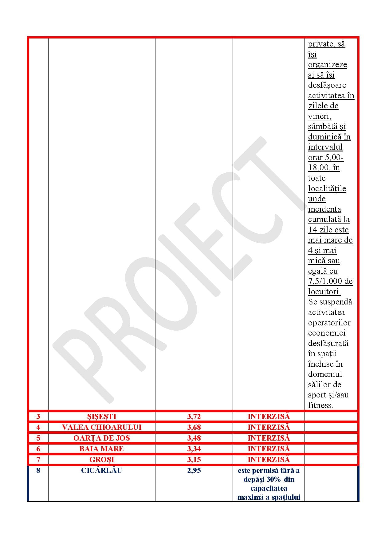 🛑 Se instituie obligația, în condițiile art. 5 alin. (3) lit. f) din Legea nr. 55/2020, cu modificările și completările ulterioare, pentru operatorii economici care desfășoară activități de comerț/prestări de servicii în spații închise și/sau deschise, publice și/sau private, să își organizeze și să își desfășoare activitatea în zilele de vineri, sâmbătă și duminică în intervalul orar 5.00-18.00, în toate localitățile unde incidența cumulată la 14 zile este mai mare de 4 și mai mică sau egală cu 7,5/1.000 de locuitori.