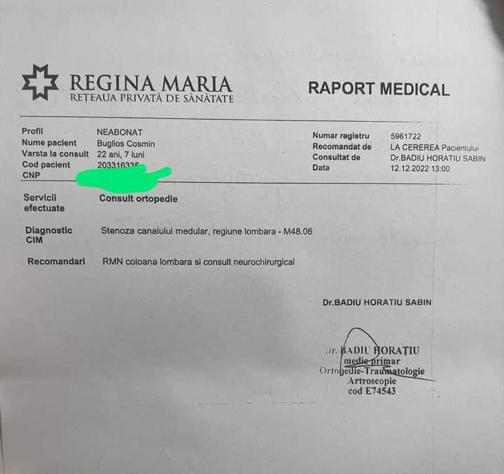 Mama m-a dus cât de repede la Spitalul Someșan din Baia Mare, să fac RMN-ul, iar după ce am primit CD-ul cu rezultatul, l-am trimis medicului din Cluj, Ștefan Florian, cu care vorbisem în prealabil.