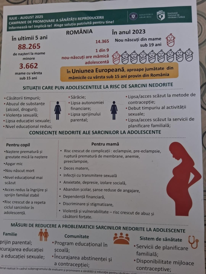 În luna august 2025, Ministerul Sănătății din România, în colaborare cu Institutul Național de Sănătate Publică, derulează o campanie națională de promovare a sănătății reproducerii sub sloganul: „Informează-te! Implică-te! Alege soluția potrivită pentru tine!”.