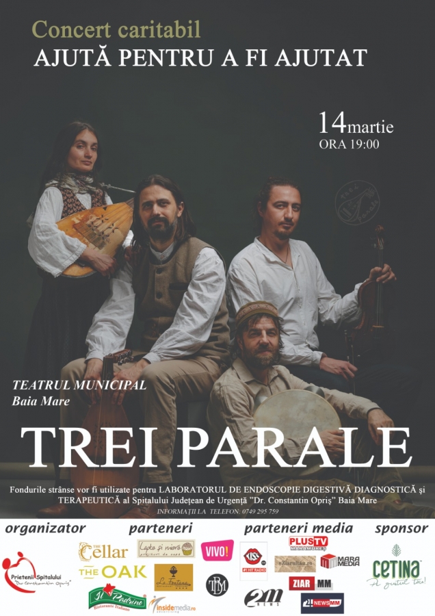 Pe scena Teatrului Municipal Baia Mare va evolua „Trei parale”, un grup revivalist bucureștean, care face uz de o documentare minuţioasă în domeniul culturii muzicale tradiţionale. Un rol important în acest sens îl are Florin Iordan, etnomuzicolog în cadrul Muzeului Ţăranului Român din Bucureşti și conducător al formației.