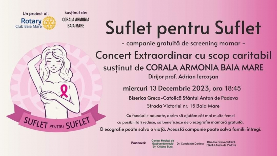 În seara de 13 decembrie, Clubul Rotary a organizat un Concert Extraordinar cu scop caritabil, „Suflet pentru Suflet”. Acesta a fost susținut de Corala „Armonia” din Baia Mare.