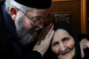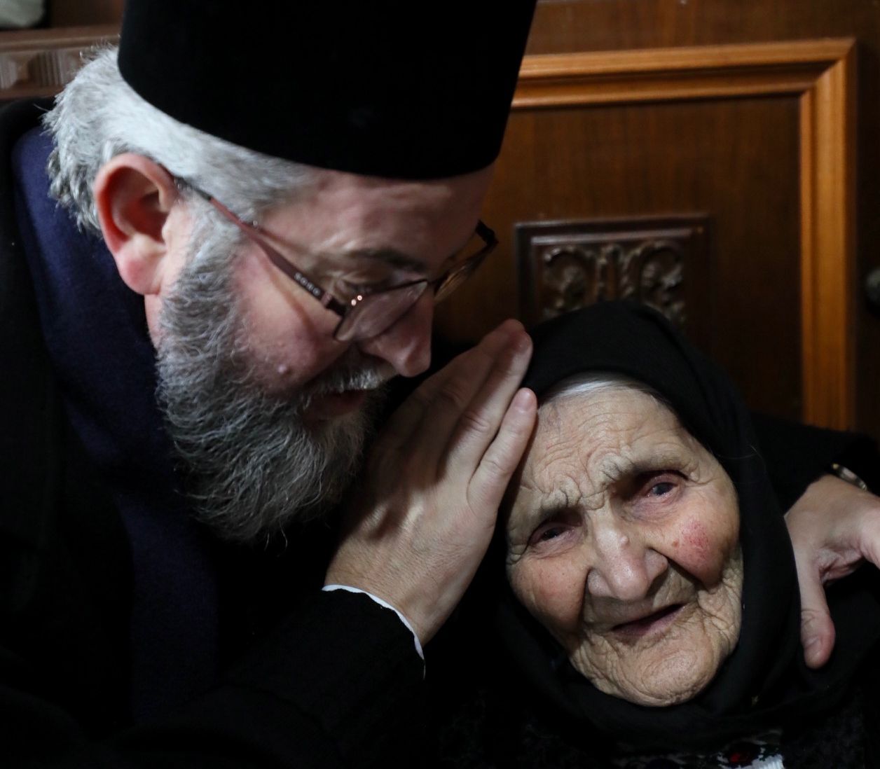Episcopul Iustin, în vizită la doi bătrâni de 100 de ani (GALERIE FOTO)