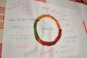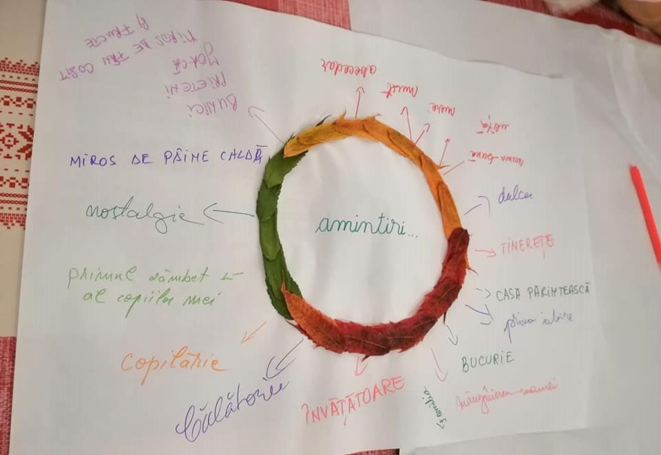 Finalul întâlnirii a fost unul al mărturisirilor, al evocării celei mai pregnante amintiri a fiecăreia dintre doamnele prezente. Amintirile – unele pline de umor, altele triste, dar toate sensibile şi cu parfum de copilărie – au fost scrise pe frunze din hârtie şi puse spre păstrare în trăistuţe de lână, ţesute în stil tradiţional maramureşean şi oferite cadou de Cristina Ţânţaş tuturor participantelor.