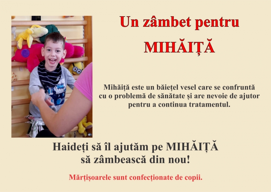 Banii vor fi folosiți pentru a-l ajuta pe Mihăiță, un băiețel de 5 anișori, cu probleme de sănătate. Pentru el urmează un drum lung de recuperare.