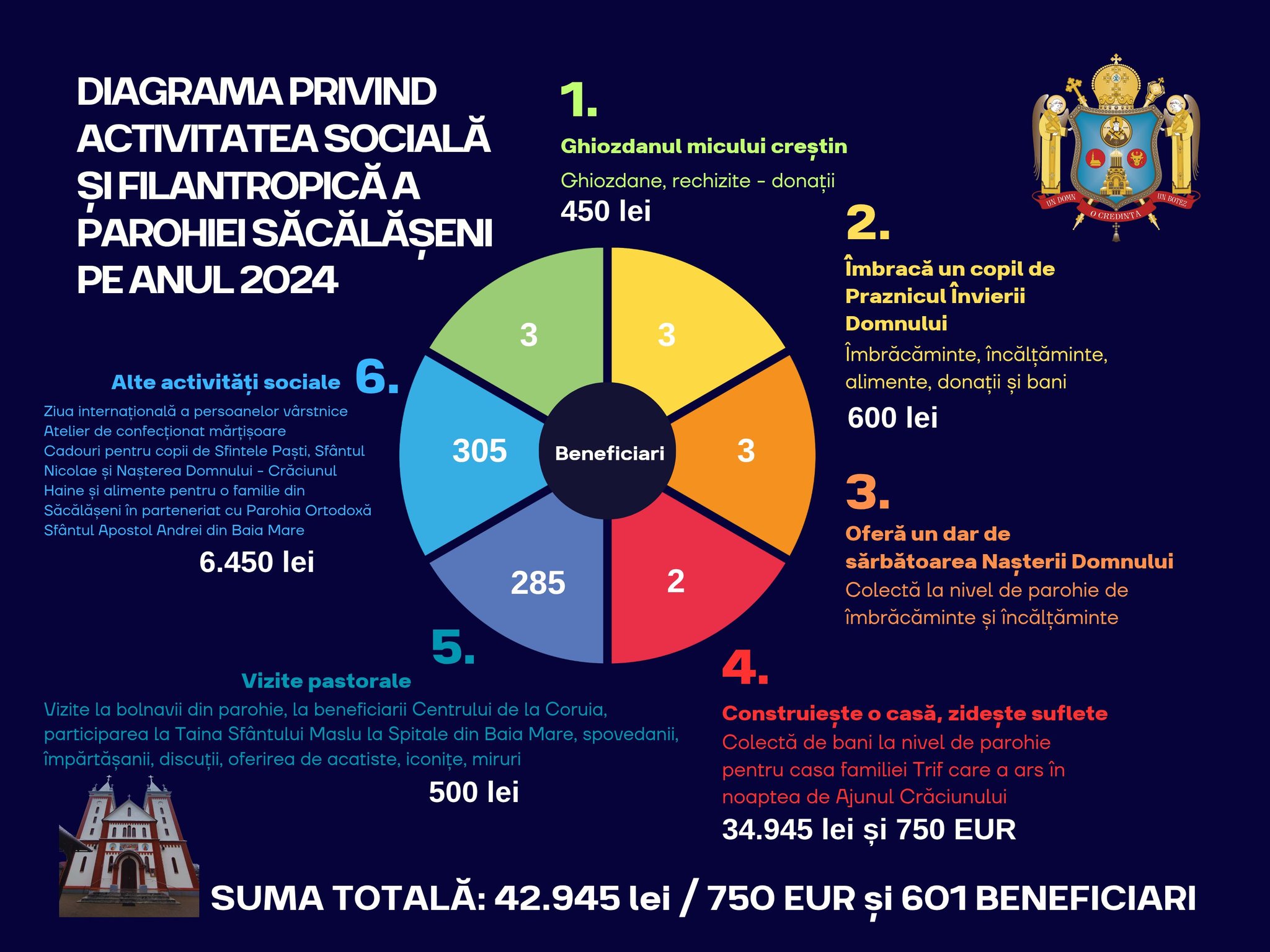 Activitatea socială și filantropică a Parohiei Ortodoxe „Sfinții Apostoli Petru și Pavel” Săcălășeni a fost una bogată în anul 2024.