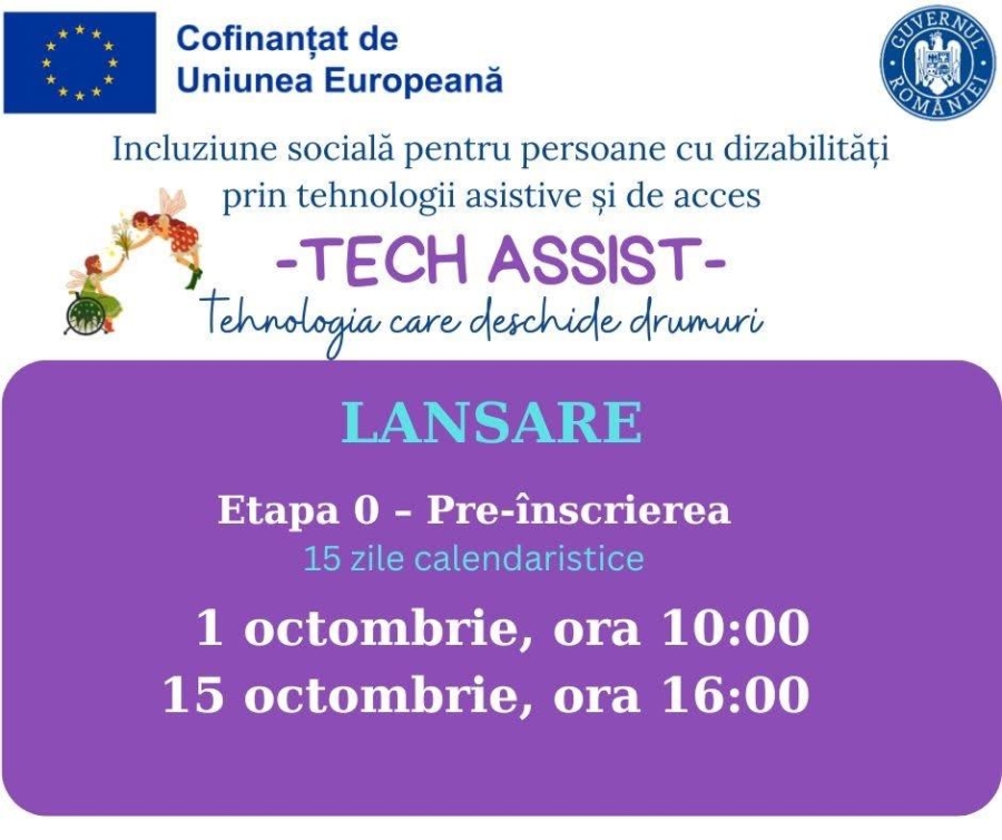Direcția de Asistență Socială Baia Mare anunță că, din 1 Octombrie 2025, ora 10.00, începe etapa de pre-înscriere în cadrul programului național „TECH ASSIST”, prin care orice persoană cu certificat de handicap (grav, accentuat, mediu sau ușor), copil sau adult, poate primi până la 39.900 lei sub formă de voucher electronic pentru echipamente asistive și de acces, cum ar fi: scaune rulante, dispozitive de ridicare, orteze și proteze, aparate pentru comunicare și alte tehnologii de sprijin pentru o viață mai independentă.