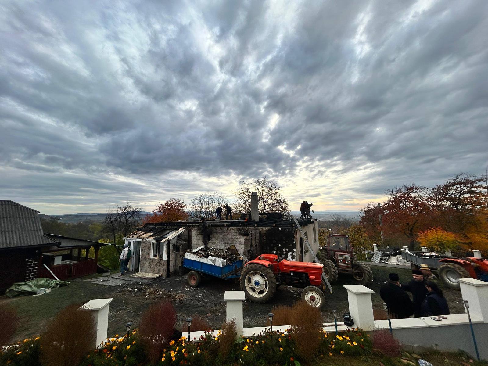 Solidaritate și nădejde după incendiu: Episcopia și credincioșii din Sișești, alături de o văduvă rămasă fără locuință