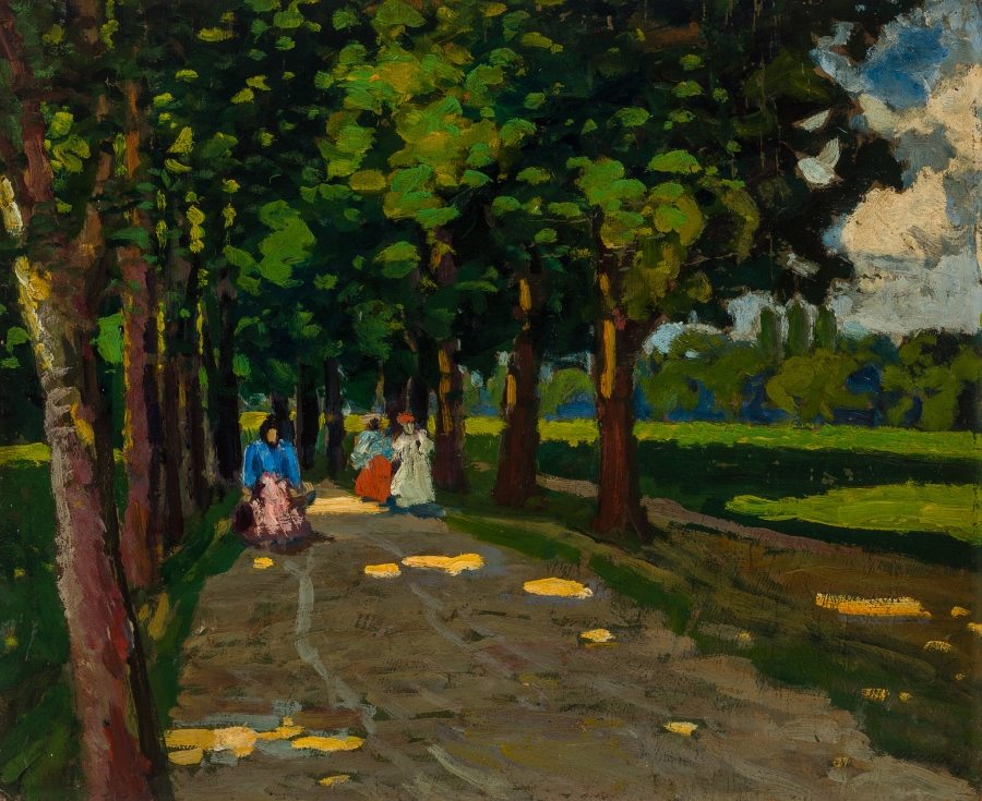 Lucrarea ilustrează o alee din parc care astăzi este cunoscută ca aleea dublă ce duce de la Statuia ostașului român spre Muzeul de Etnografie și Artă populară, fiind un loc foarte cunoscut băimărenilor.
