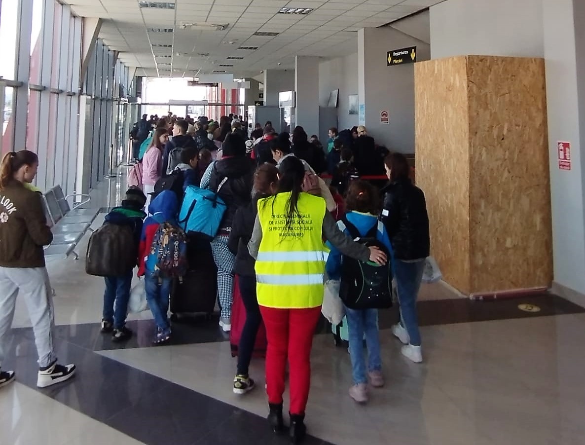 Un grup format din 172 de copii din Ucraina și însoțitorii lor au ajuns luni, 11 aprilie, în siguranță, la Aeroportul International Maramures. Grupul a fost preluat, în noaptea de 9 spre 10 aprilie 2022, de specialiști din cadrul DGASPC Maramures de la punctul de trecere a frontierei de la Dyakovo – Halmeu.