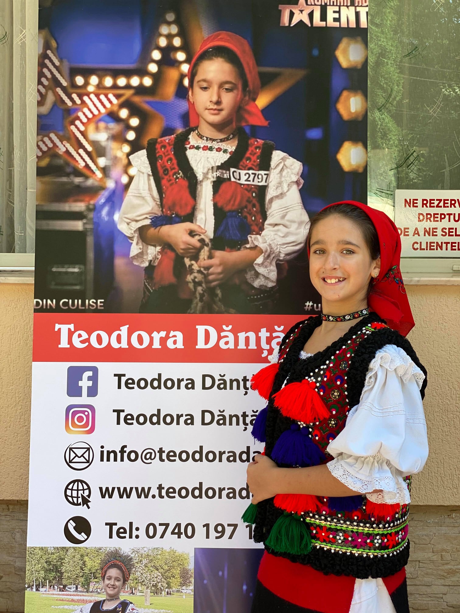 Dar anul 2021 i-a adus tinerei artiste din Maramureș și altfel de performanțe. „Toate premiile obținute sunt importante, nu am unul preferat, la concursuri merg să cunosc oameni noi, să îmi fac prieteni și să cuceresc noi fani. Pe lângă premiile obținute, doresc să mulțumesc profesorilor mei și studiourilor cu care lucrez pentru asta, anul acesta am scos două cântece proprii de muzică ușoară, la unul din ele colaborând cu colegul meu Angel Ionce la piesa „Tu și eu”. La muzică populară, am scos patru piese, din zona Maramureș, Bistrița-Năsăud și Mureș. Am reușit să imprim în studio două pricesne minunate și acum, la final de an, a apărut primul meu album audio, Sunt o fată seineancă, imprimat la Editura „Cartea Sonoră, care conține 11 cantece de folclor și o priceasnă. Dar dacă ar fi să fac un top al succeselor din 2021, pe primul loc sunt cei 4 de „Da” obținuți pe cea mai mare scenă din țară, la „Românii au talent”, unde pentru prima dată de când urc pe scenă, am avut emoții! A fost cea mai tare experiență pentru mine acolo, doar eu și cei patru jurați și câteva milioane de telespectatori! Mă gândeam la Maramureș, la profesorii mei, să nu cumva să mă fac de rușine și văzând câte mii de comentarii s-au adunat după acel moment, spun că acela este cel mai important premiu pentru mine. Pe lângă momentul „Românii au talent”, mă simt onorată că am fost aleasă să reprezint zona noastră, împreună cu colegii mei de la Ansamblul Folcloric „Jucăușii” ai Asociației „Teodora Dănțăușa”, pregătiți de doamna profesor coregraf Maria Seraz. În finala emisiunii „Destinația Anului 2021” de la Prima TV”, arată pentru DirectMM.ro Teodora Dănțăușa.