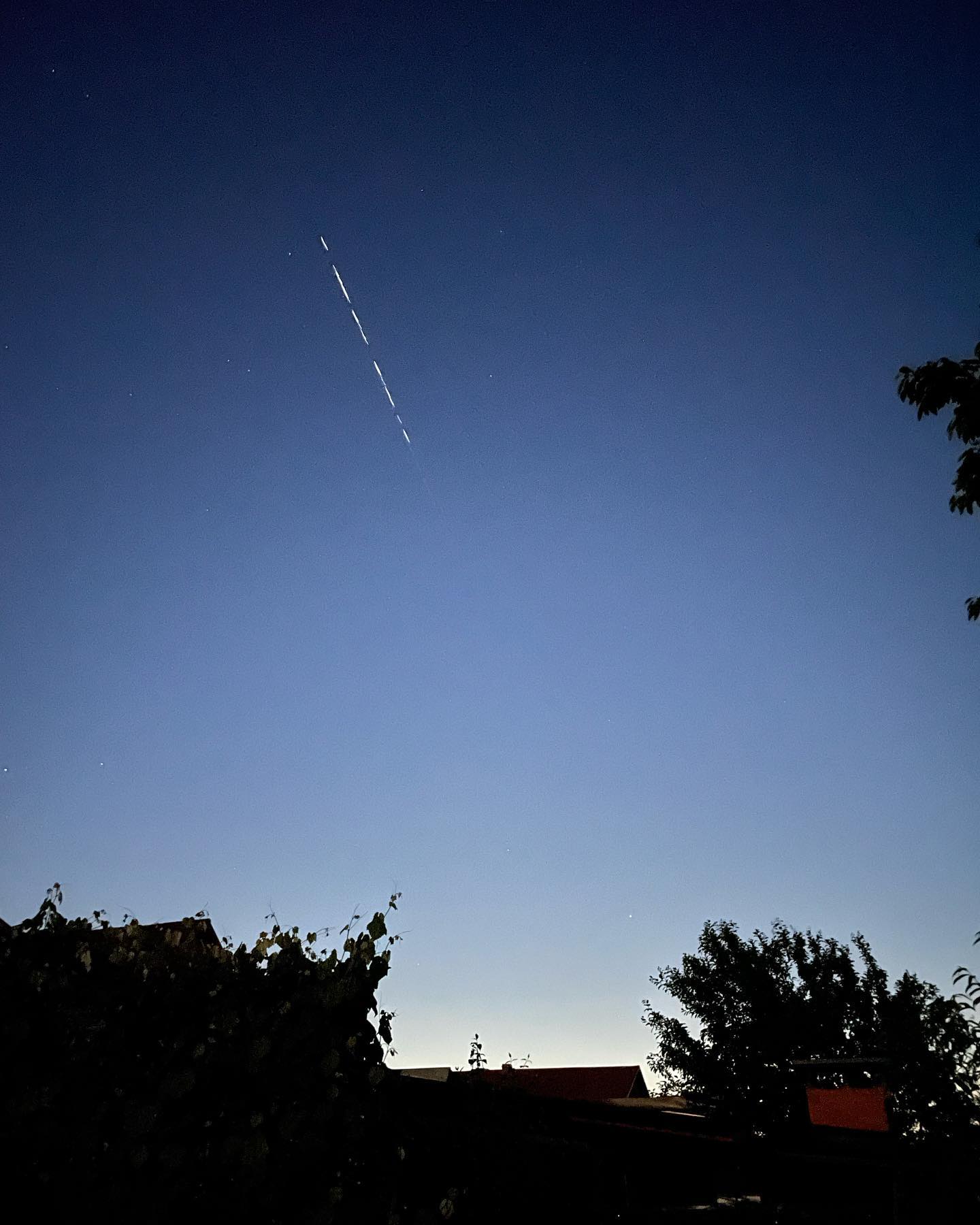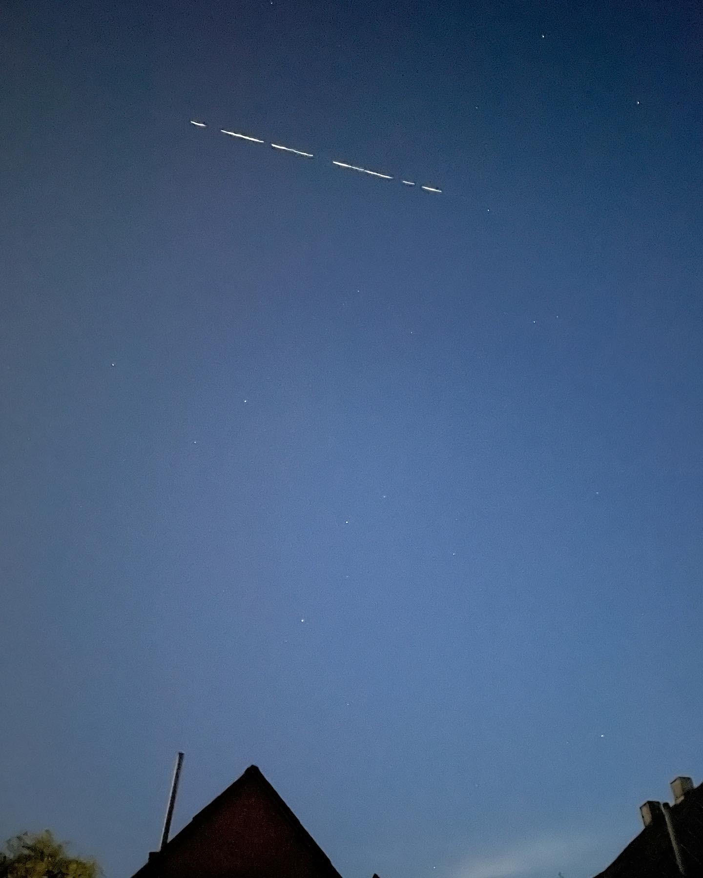 „Tocmai am văzut 23 de sateliți în șir indian. Suntem vreo 15 persoane aici la Satu Nou de Jos care îi vedem. Se indreaptă spre sud”, spune Tudor, un tânăr care a făcut câteva poze cu acest trenuleț.