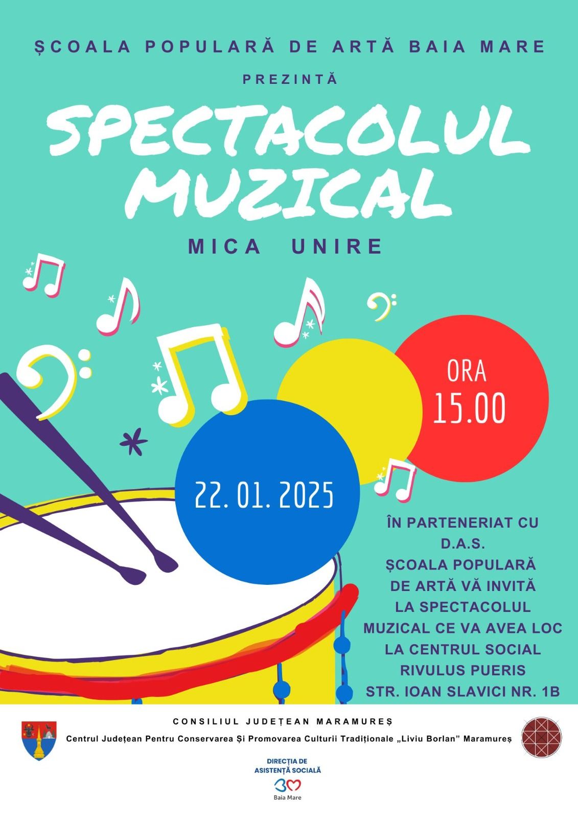„Mica Unire va fi sărbătorită cu multă voie bună, dansuri populare, cântec și momente artistice de calitate susținute de elevii claselor Canto Muzică Ușoară, Canto Popular și Coregrafie.