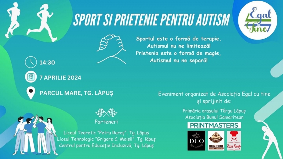 În 7 aprilie, de la ora 14.30, Parcul Mare din Târgu Lăpuș va găzdui evenimentul „Sport și prietenie pentru autism”.