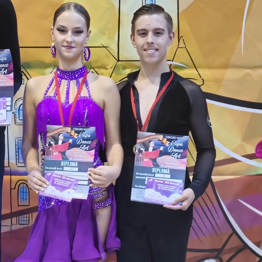 - Gănescu Bogdan – Ardelean Ștefania au obținut două locuri 4 la Open Basic 12-15 ani, atât Standard, cât și Latino.