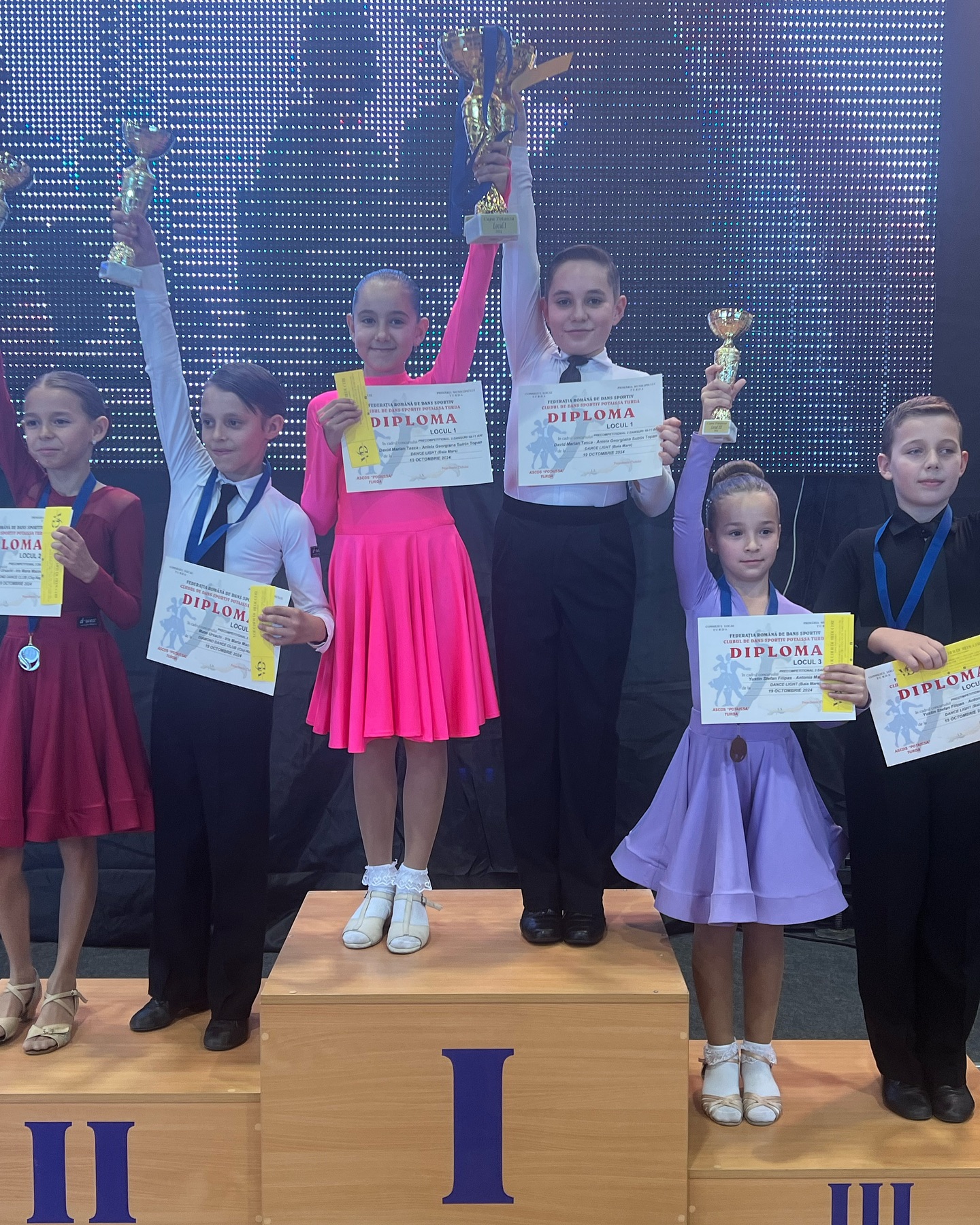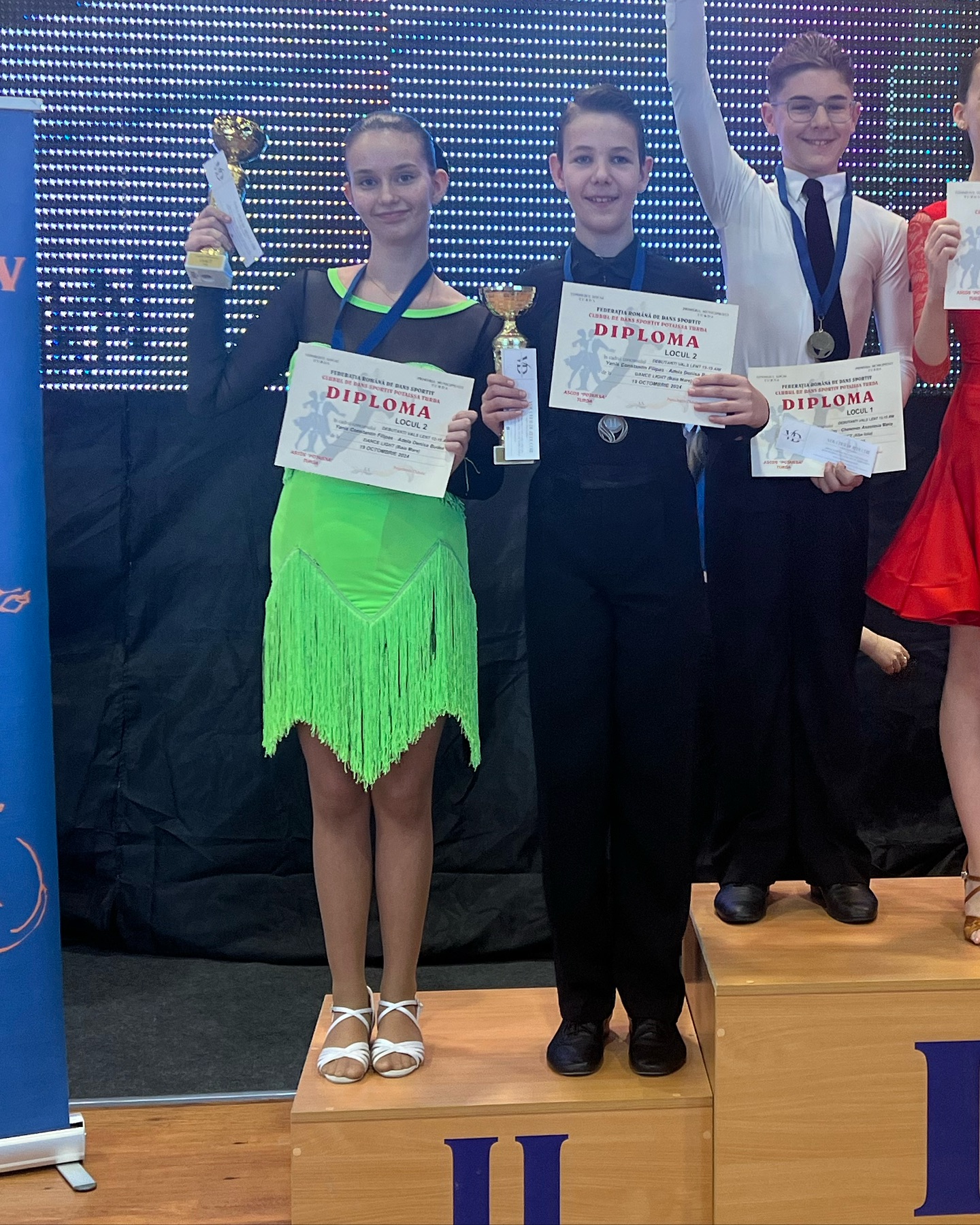 - Tașca David – Sotrin Topan Aniela au urcat pe cea mai înaltă treaptă a podiumului la categoria de Precompetitional 2 dansuri 10-11 ani.