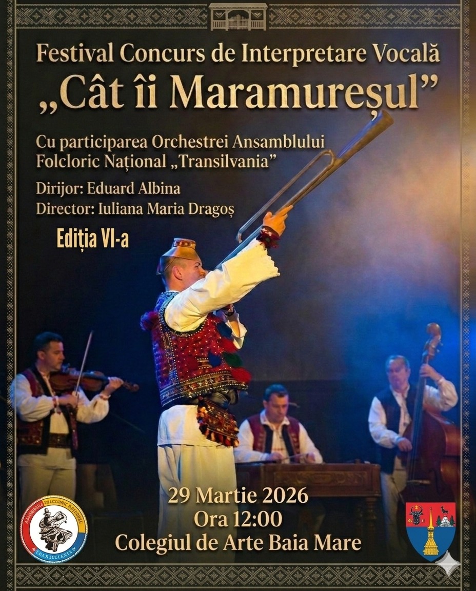 Ansamblul Folcloric Național „Transilvania” organizează, în data de 29 martie, cea de-a VI-a ediție a Festivalului – Concurs de Interpretare Vocală „Cât îi Maramureșul”, un eveniment dedicat promovării folclorului autentic și muzicii religioase.