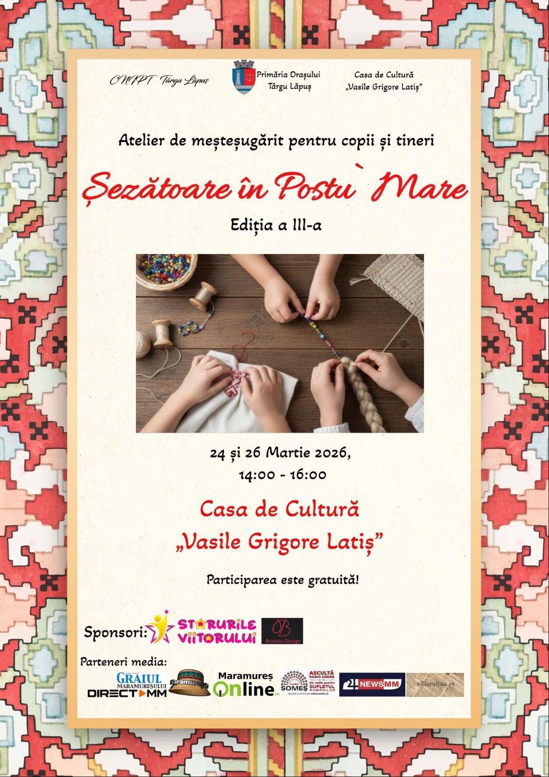 „Șezătoare în Postu’ Mare” la Târgu Lăpuș: Atelier de meșteșugit pentru copii și tineri - 2 ore în urmă