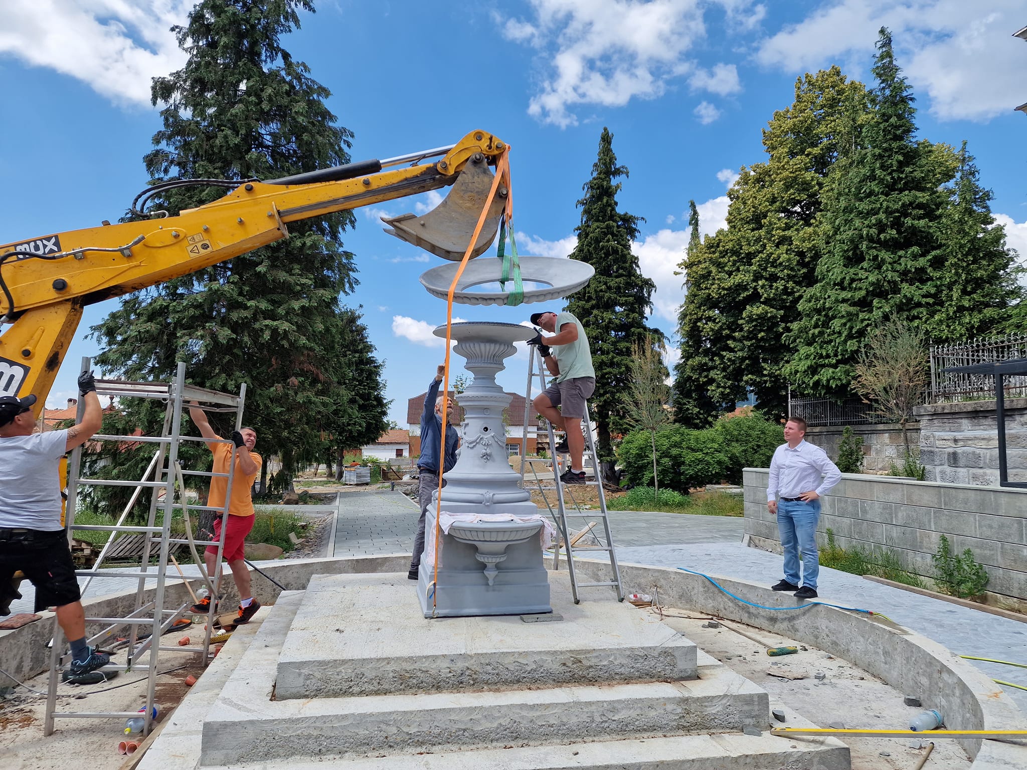 Statuia a fost adusă în piață, pe componente și s-a început asamblarea ei. La acest moment statuia este montată și pusă pe poziție. Urmează etapa de vopsire pentru a fi adusă la forma ei inițială. E mult de lucru cu ea, mult mai mult decât am estimat când am pornit pe acest drum, însă e o lucrare care se face o dată la 100 de ani. Am considerat-o necesară și oportună. Nu puteam să o neglijam, iar odată ce va fi gata, va reprezenta cu siguranță un punct de atracție și relaxare în centrul vechi al orașului”, arată primarul Alin Sebastian Bîrda.