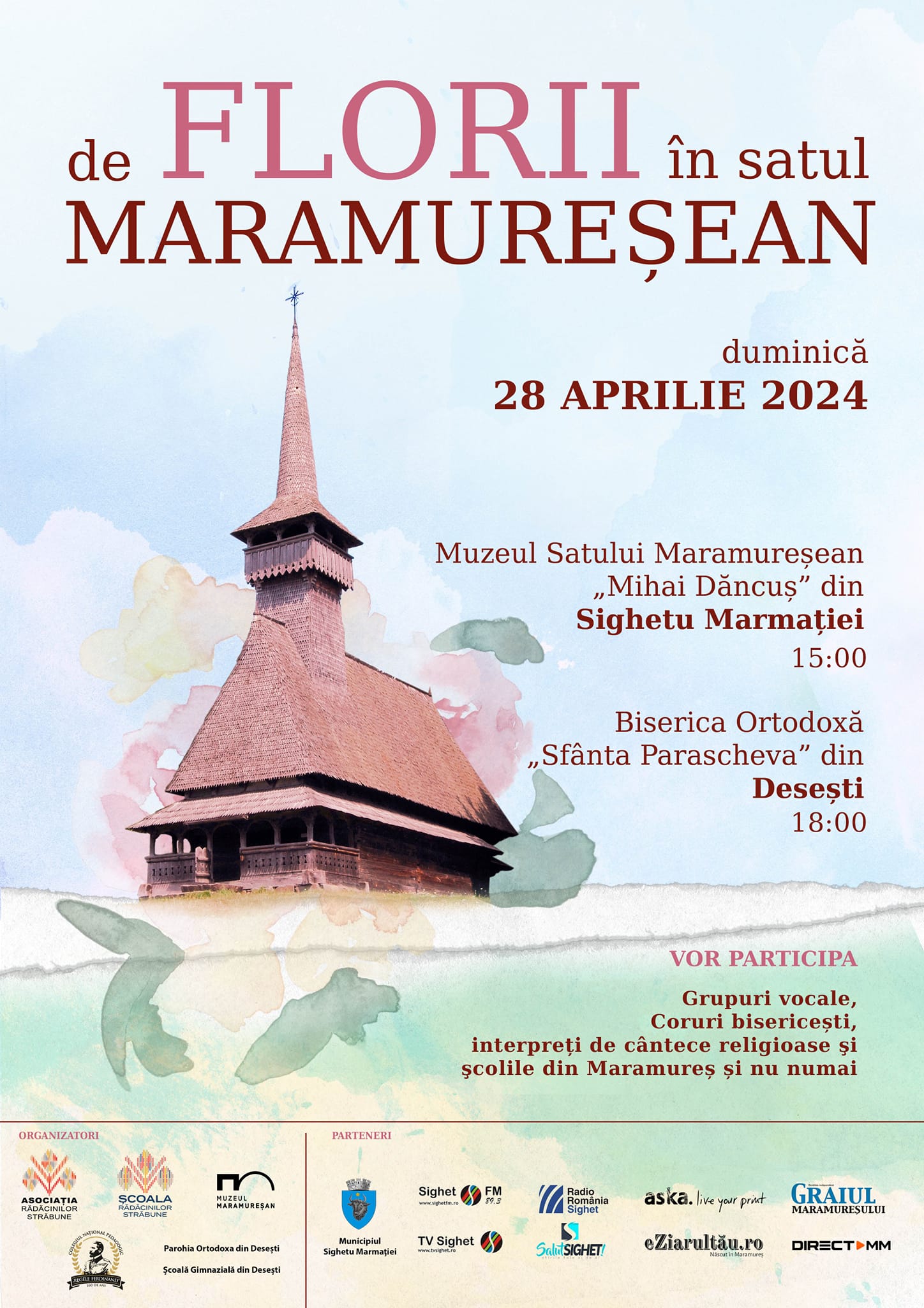 În Duminica Floriilor, 28 aprilie, va avea loc o nouă ediție a evenimentului „De Florii în satul maramureșean”. Concertul de pricesne și cântece religioase are loc an de an, aducând multă bucurie și speranță.