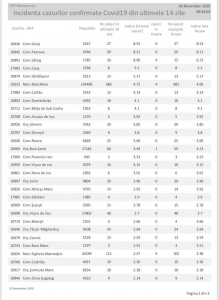 Însă, incidența cazurilor la mia de locuitori nu generează același clasament ca și cel al numărului total de infectări. Topul arată, așadar, diferit. Pe prima poziție se află Groși (incidența 8,53 – 27 cazuri), apoi Petrova (incidența 8,21 – 20 cazuri), respectiv Sălsig (incidența 6,72 fără focare – 12 cazuri, 8,96 incidența cu focare – 16 cazuri). Așadar, avem 3 localități cu incidența de peste 8, dar Sălsig are o incidență calculată de sub 7, cu 12 cazuri, dacă sunt eliminate cele 4 din focare). Facem mențiunea că, în toate situațiile, vorbim strict despre numărul de cazuri înregistrate în ultimele 14 zile!