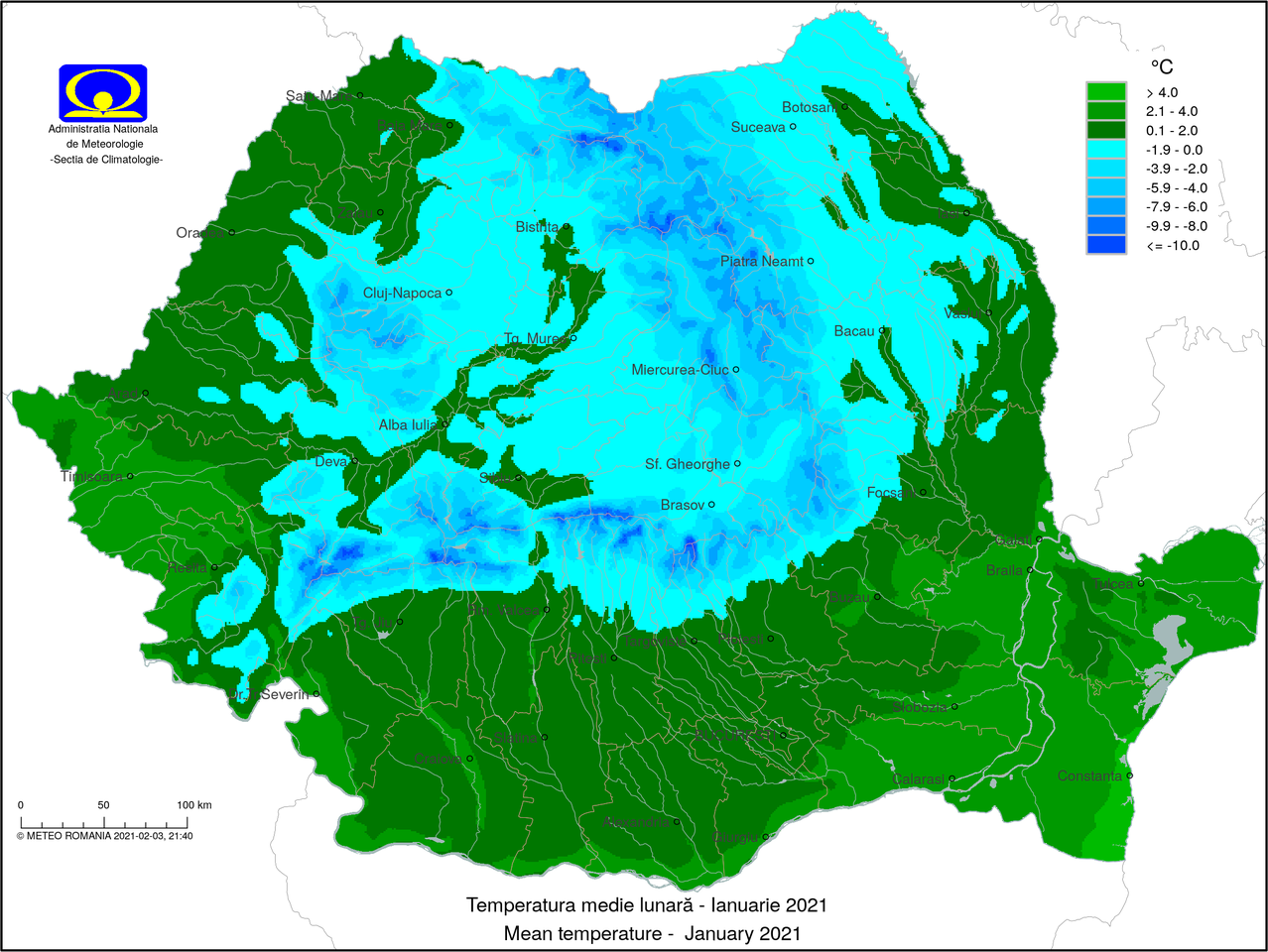 Transilvania: – ianuarie 2021: -1,9 °C, față de media (1981-2010): -4 °C