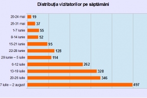 În luna iulie situația s-a îmbunătățit considerabil, în sensul că numărul de vizitatori săptămânal a crescut gradual, de la peste 100 în prima săptămână, la aproape 500 în ultima. De asemenea, în aproape jumătate din zilele lunii, numărul zilnic de vizitatori a fost de peste 50, iar în două zile peste 100, maximul înregistrat fiind de 144, în data de 30 iulie; cifrele din ultimele zile ale lunii apropiindu-se timid de valorile similare, corespunzătoare anului trecut.