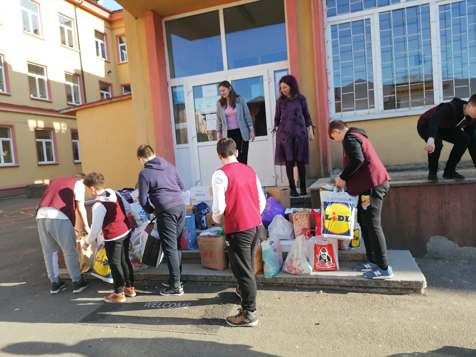Suntem mai puternici împreună: Din școala băimăreană din centrul orașului, Nicolae Iorga, primele ajutoare au plecat către refugiați! Dar campania va continua!