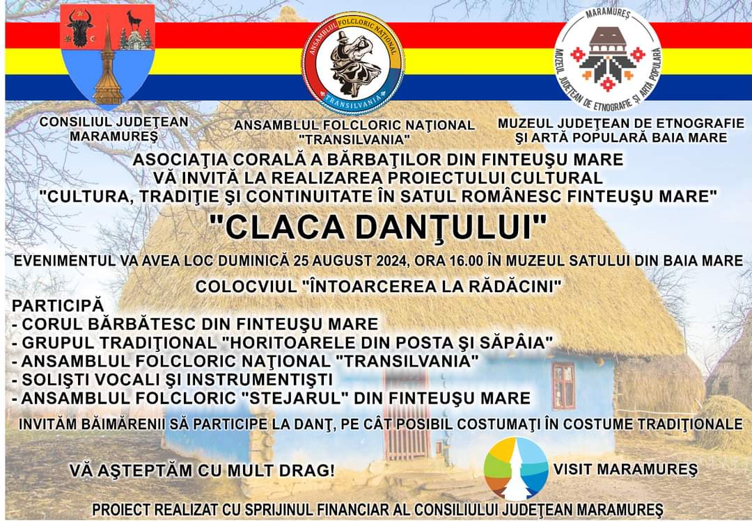 Duminică, 25 august, de la ora 16:00, la Muzeul Satului din Baia Mare va avea loc „Claca Danțului”.
