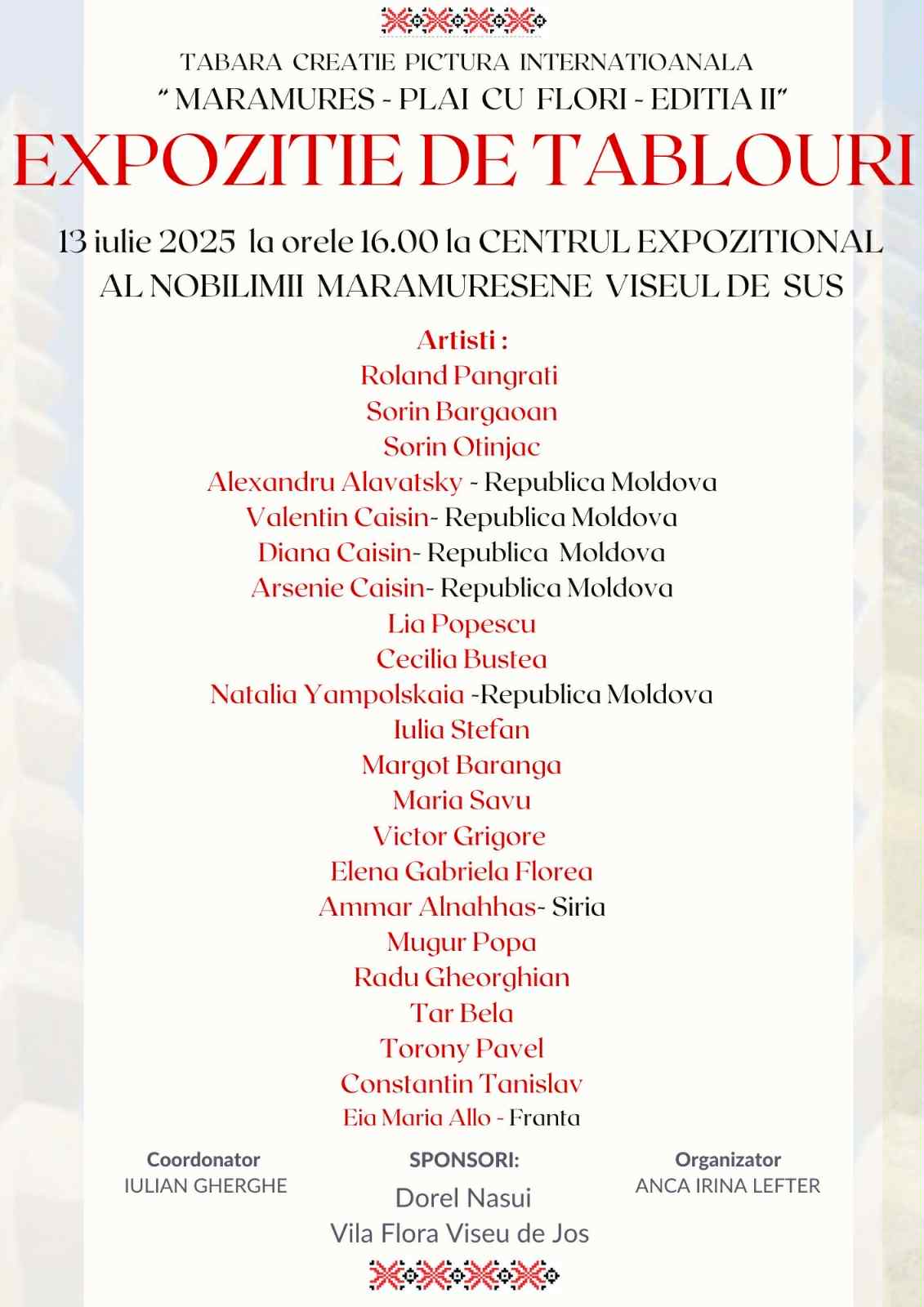 În perioada 5 – 15 iulie, în inima Maramureșului, la Vila Flora din Vișeu de Jos, are loc cea de-a doua ediție a Taberei Internaționale de Creație “Maramureș – Plai cu Flori”, un eveniment dedicat artei plastice contemporane și dialogului intercultural.