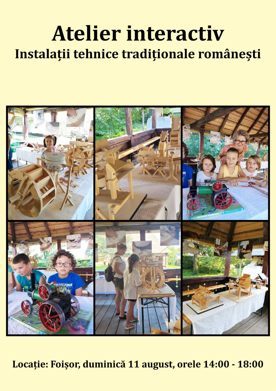 - 14.00 – 18.00 – Atelier interactiv „Instalații tehnice tradiționale românești, miniaturi” – Andrei Avram