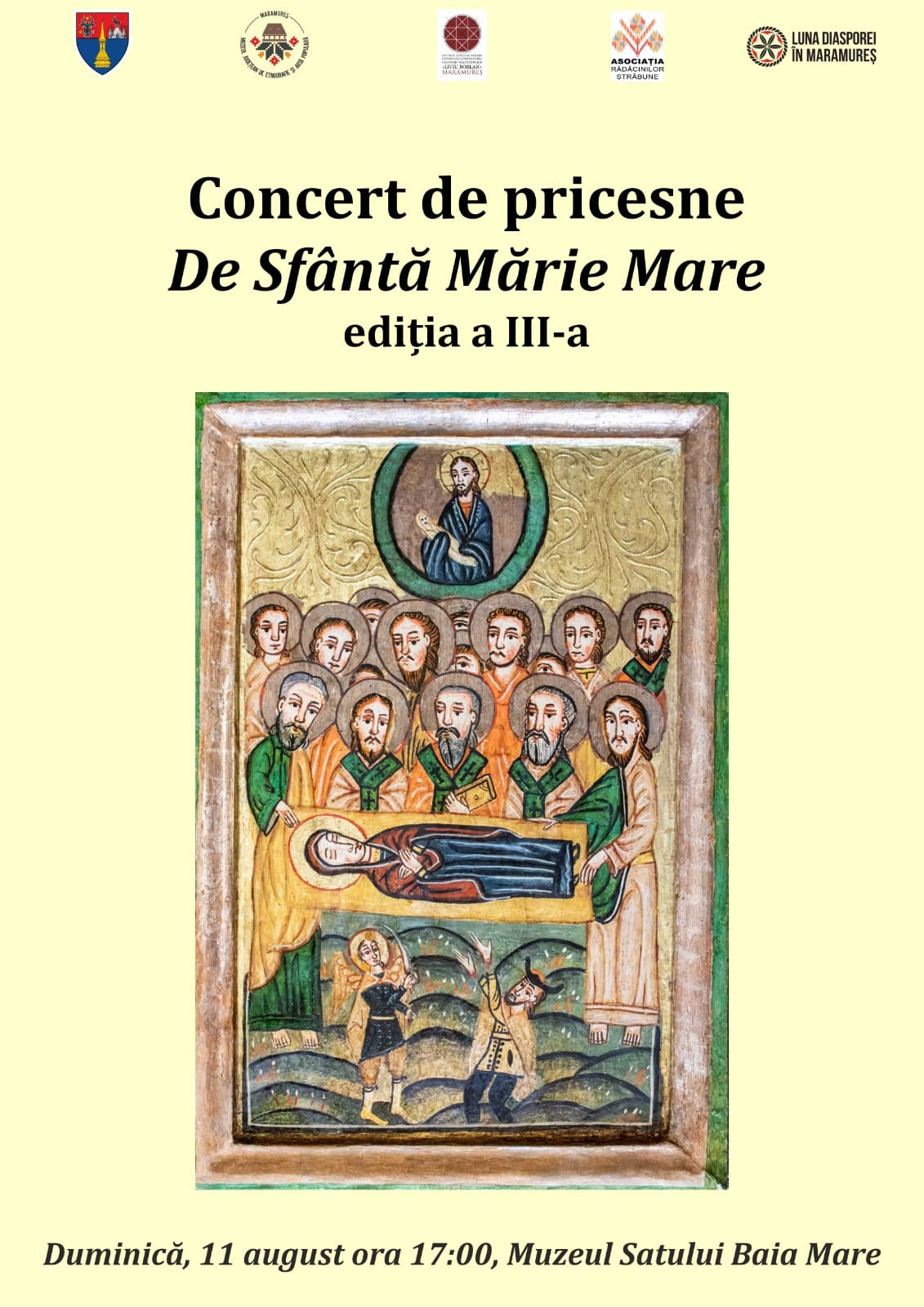 - 17.00 – 18.00 – Concert de pricesne „De Sfântă Mărie Mare”.