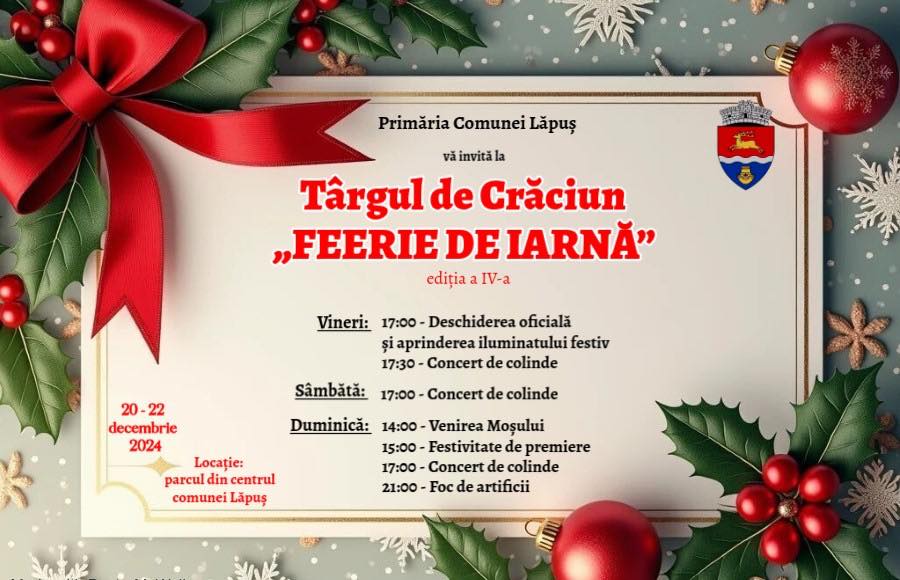 Târgul de Crăciun „Feerie de iarnă”, ediția a IV-a, se deschide în comuna Lăpuș la finalul săptămânii. Acesta se va desfășura în perioada 20-22 decembrie.