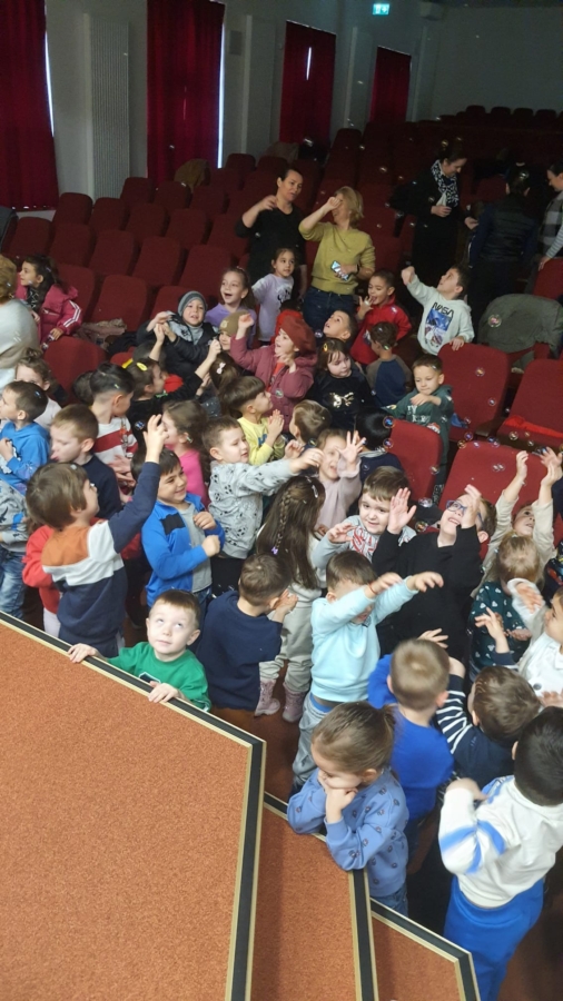 Însoțiți de doamnele educatoare, copiii au urmărit cu interes peripețiile îndrăgitului personaj Păcălici, fiind captivați de personajele jucăușe, momentele interactive și decorurile viu colorate, desprinse din basme.