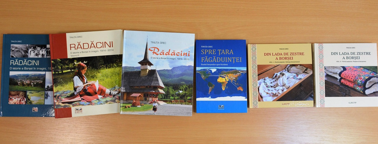 Spectaculos și special, frumos și autentic, portul popular din Borșa este subiectul principal al noii cărți lansate de directorul Bibliotecii Orășenești Borșa, Tinuța Grec. Borșeancă prin adopție, îndrăgostită iremediabil de zona, oamenii și tradițiile Maramureșului, argeșeanca Tinuța Grec scrie despre comorile zonei. În 2011, autoarea a publicat la Editura Eurotip – Baia Mare cartea ”Rădăcini – O istorie a Borșei în imagini, 1911-2011”, coautor fiind Nicoară Mihali. În 2013, publică la aceeași editură volumul ”Spre Țara Făgăduinței – Exodul borșenilor spre Occident”, carte distinsă în 2014 cu Premiul III în cadrul Festivalului Național de Literatură și Folclor “Armonii de primăvară” Vișeu de Sus. În 2014, vede lumina tiparului cel de-al II-lea volum din ciclul ”Rădăcini – O istorie a Borșei în imagini, 1914-2014, serie continuată cu vol. III, intitulat ”Rădăcini – O istorie a Borșei în imagini, 1915-2015”, apărut în anul 2015. În 2017, apare cartea Din lada de zestre a Borșei, Vol. I – Portul popular. Cămașa borșenească.