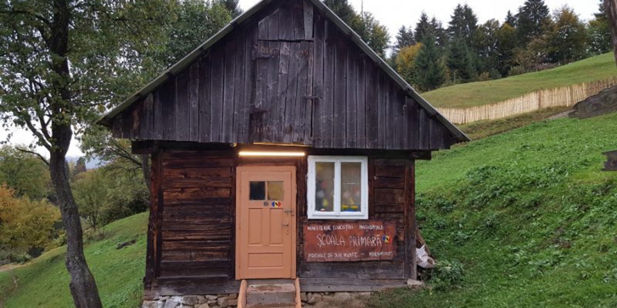 Cea mai mică școală din România are doar 12 metri pătrați și funcționează într-o căsuţă de lemn închiriată, într-un cătun în care nu există nici astăzi electricitate. În 2015, o asociaţie non-guvernamentală a montat panouri solare pe școală, dar și pe casele în care trăiesc elevi.