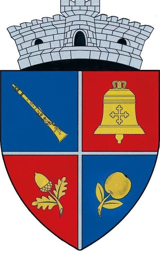 - În partea superioară, în dreapta, în câmp albastru, se află un taragot din aur.