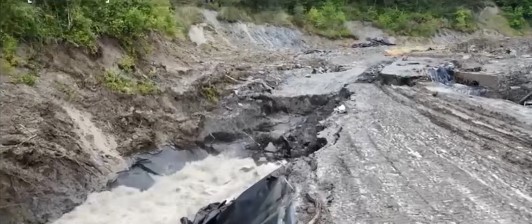 Pârâul Corund, un firicel neînsemnat în vremuri liniștite, a crescut de 100 de ori în ultimele zile. A fost nevoie de atât ca să dezvăluie cât de vulnerabil e tot sistemul. Pe 8 mai, compania a construit un dig, dar, spun localnicii, „n-ar fi ținut nici un copil cu găleata, darămite o viitură.”