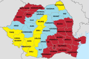 Numărul județelor afectate a ajuns la 20 (incluzând și capitala) și sunt cele marcate pe hartă prin culoarea roșie.