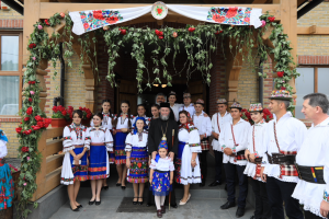 După o tradiţie veche de primire a Ierahului, la intrarea în localitate, acesta a fost primit de călăreţi cu caii împodobiţi şi rugat să urce într-o caleaşcă albă. În timpul Sfintei Liturghii, PS Iustin a vorbit celor peste 1000 de credincioşi prezenți despre importanţa Duminicii Tututor Sfinţilor, despre sfinţii cunoscuţi şi necunoscuţi ai Bisericii, despre cine sunt Sfinţii Bisericii, despre temeiul sfinţeniei.