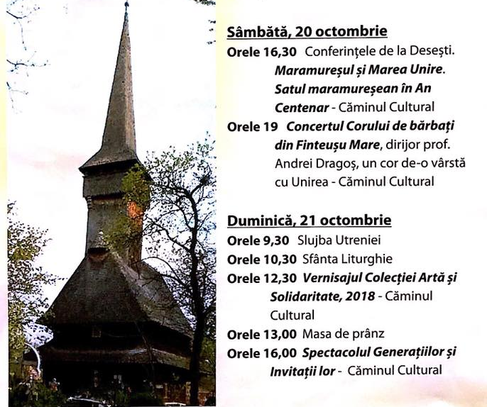 Dar iată și programul complet, anunțat de organizatori: Parohia Ortodoxă, Primăria și Consiliul Local din Desești și Asociația Culturală”Nichita Stănescu”.
