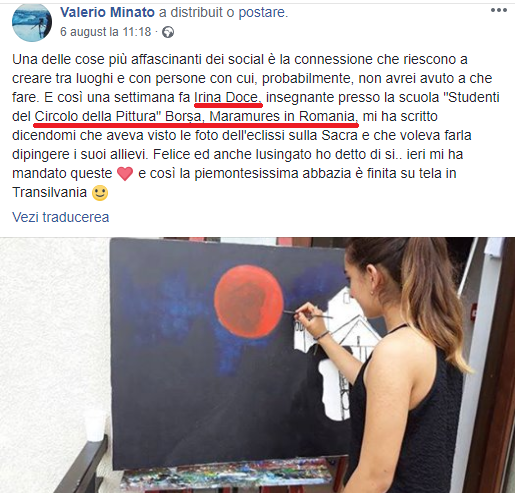 În cadrul aceluiaşi eveniment, pictoriţa Irina Doce a donat oraşului Borşa o lucrare, care va fi amplasată la Centrul Turistic Borşa, reprezentând eclipsa din 27 iulie, văzută de pe vârful Pietrosu. Acest fapt n-a trecut neobservat de către artiştii fotografi, unul dintre ei fiind italianul Valerio Minato care, pe pagina sa de socializare, dedicată fotografiei, vorbeşte despre lucrarea Irinei Doce și despre cercul de pictură din Borșa.