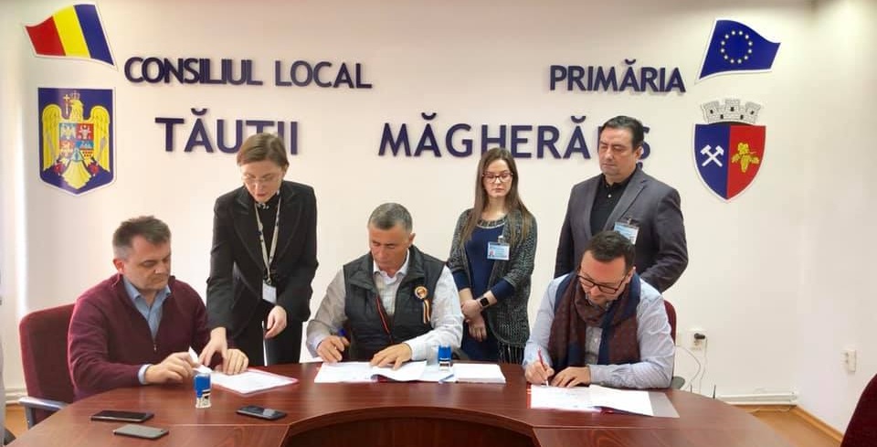 Astăzi, la primăria Tăuții Măgherăuș a fost semnat contractul pentru amenajarea centrului civic al orașului. Este vorba de un contract cu fonduri europene, în valoare de aproape 2 milioane de euro – a precizat primarul Anton Ardelean. Câștigătorii licitației pentru lucrările aferente acestui proiect sunt: SC Aedilis SRL (arh. Dan Floruț) – proiectant general● Conrep SA (director ing. Mihai Boga) – constructor ● SC Electronet Concept SRL (director ing. Marius Petruț) – subcontractant. Proiectul – care are un titlu lung, după cum a recunoscut Anton Ardelean – își propune reconversia funcțională, reutilizarea unor terenuri din zona centrală a orașului și transformarea lor în zone de agrement și petrecere a timpului liber pentru cei din comunitate. Prin această investiție se realizează amenajarea infrastructurii urbane în centru civic de nivel european – a apreciat primarul orașului Tăuții Măgherăuș.