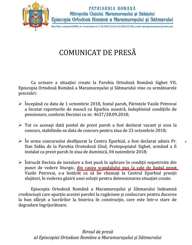 Pentru scandalul de la parohia din Sighet, episcopia îl acuză pe fostul ei slujitor (VIDEO)