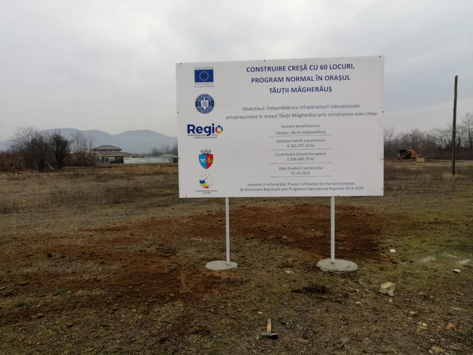 Campusul amenajat lângă Liceul Tehnologic ”Traian Vuia” din Tăuții Măgherăuș va fi completat cu două noi obiective. Administrația locală a început lucrările pentru o creșă care va avea 60 de locuri. Valoarea totală a investiției e de 4,7 milioane de lei, din care contribuția din fonduri UE este de 2,1 milioane de lei. Data finalizării proiectului este 31 mai 2021.