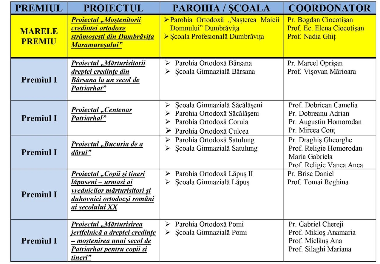 În urma evaluǎrii celor 15 proiecte desfășurate în faza eparhială, Marele Premiu a fost câștigat de tinerii Parohiei Ortodoxe Dumbrăvița – Protopopiatul Baia Mare, sub coordonarea părintelui Bogdan Ciocotișan. Tinerii acestui grup de catehezǎ parohialǎ au demonstrat de-a lungul timpului cǎ formeazǎ o echipă frumoasă şi unitǎ care păstrează valorile autentice ale credinței strămoșești.
