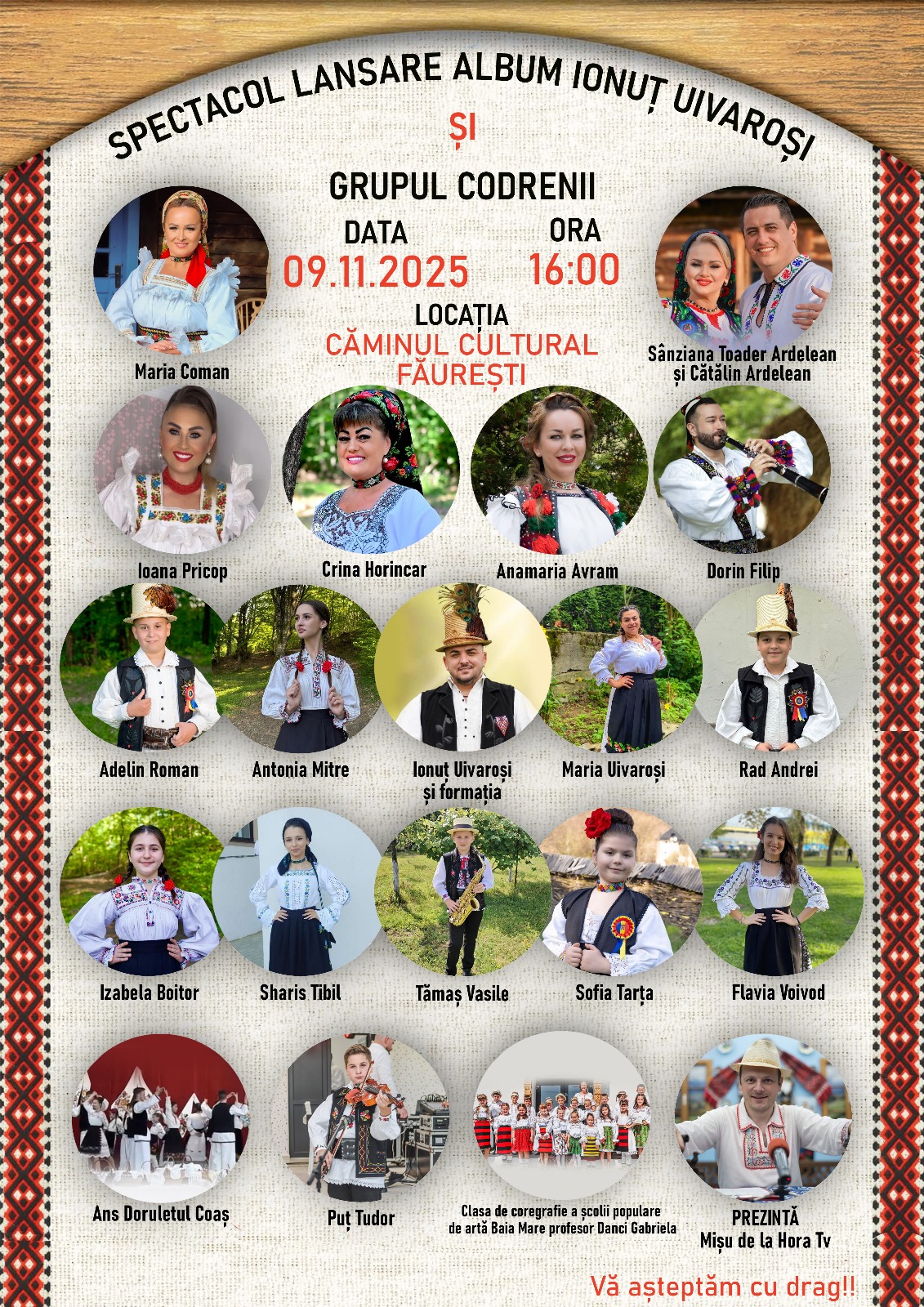 Iar pe dumneavoastră vă așteptăm cu mare drag în data de 09.11.2025, de la ora 16:00, la Caminul Cultural din Faurești la spectacolul de lansare!