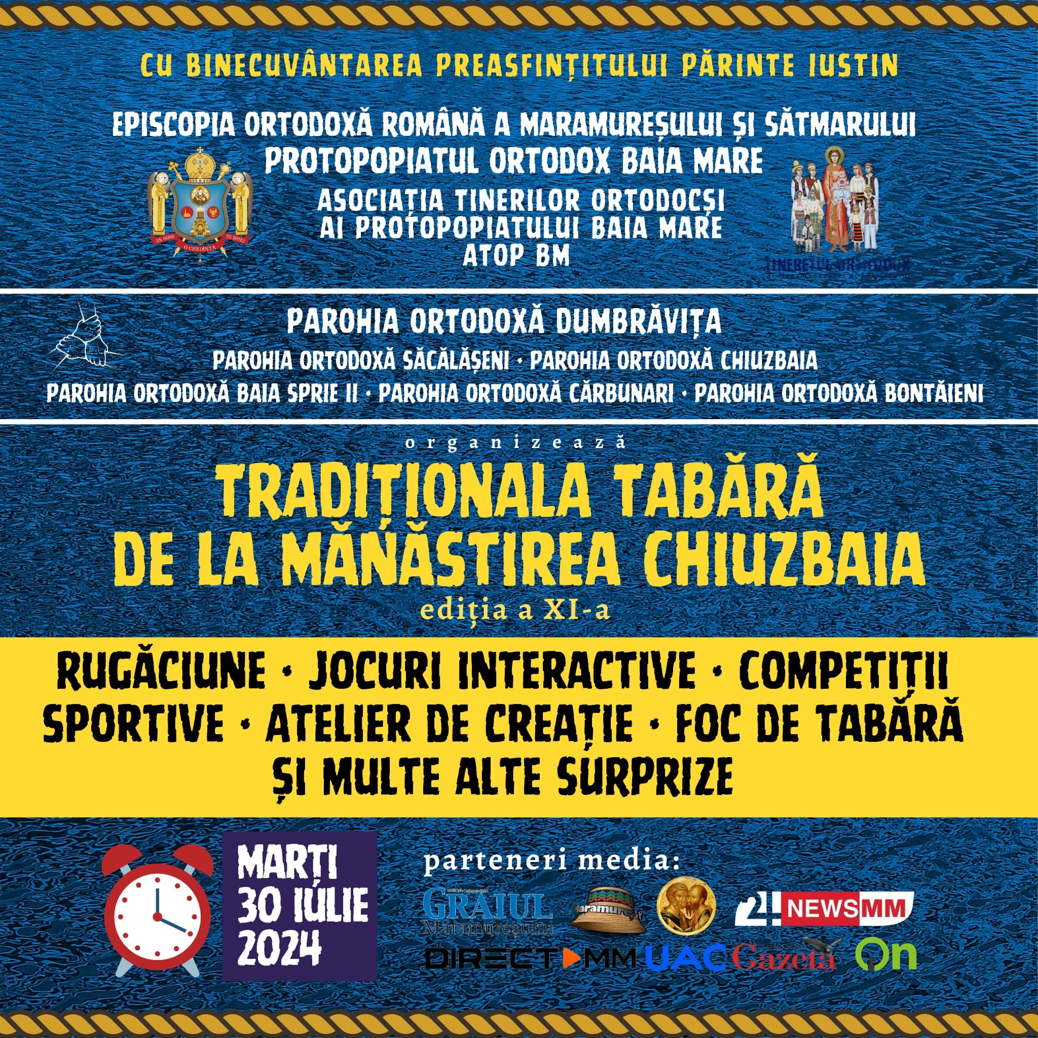 Marți, 30 iulie, va avea loc tradiționala tabără de la Mănăstirea Chiuzbaia.