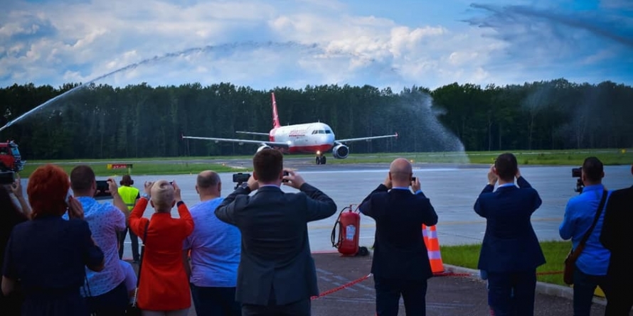 Foto; prima cursă efectuată spre Antalya de pe Aeroportul Internațional ”Maramureșul” din baia Mare